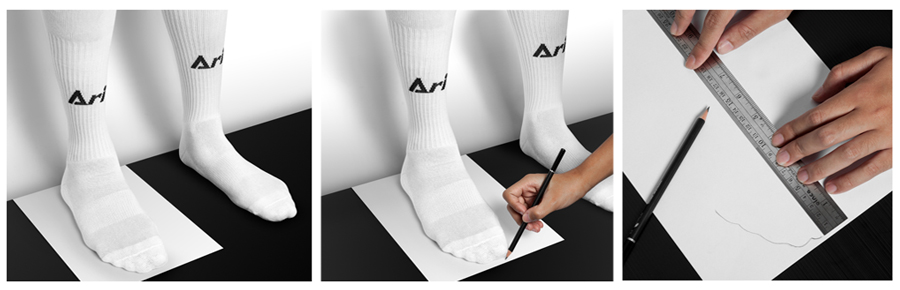 ใช้ดินสอหรือปากกาขีดส่วนที่ยาวที่สุดของเท้า