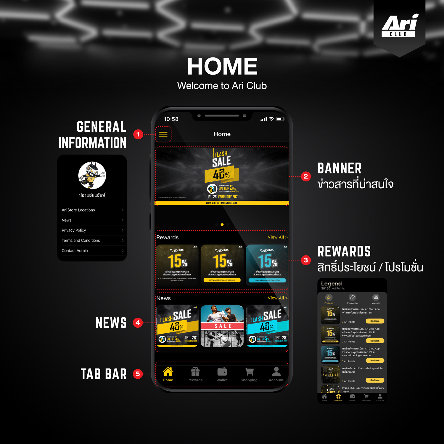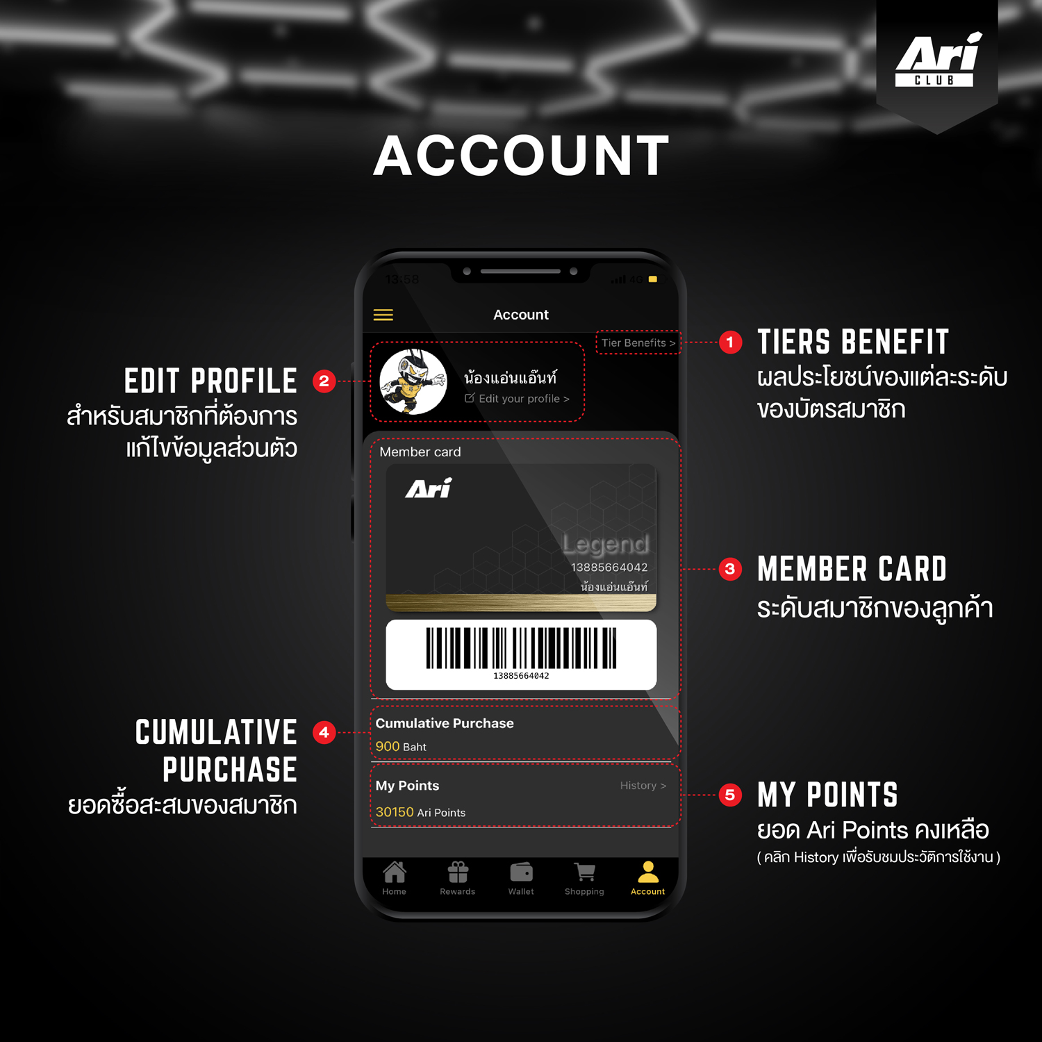 บริษัทจัดทำแอปพลิเคชัน Ari Club Club ขึ้นมีวัตถุประสงค์เพื่อใช้เป็นช่องทางในการติดต่อและสื่อสารกับลูกค้า รวมถึงเพิ่มช่องทางให้บริการแก่สมาชิกบัตร เช่น ยื่นคำประสงค์สมัครบัตร Ari Club การเปลี่ยนข้อมูลส่วนตัวของสมาชิกบัตร เช็คยอดซื้อสะสม เช็คประเภทหรือระดับสมาชิก เช็คคะแนนสะสม Ari Point วันหมดอายุคะแนนสะสม Ari Point การใช้สิทธิในการรับหรือแลกใช้คะแนนสะสม Ari Point การขอรับรางวัลและสิทธิ์ประโยชน์ต่างๆ การเช็คสิทธิประโยชน์ที่ลูกค้าได้รับแล้ว การค้นหาที่ตั้งร้านค้า/ช่องทางการซื้อขาย การรับข้อความแจ้งเตือนรายการส่งเสริมการขาย/ข่าวสาร และข้อมูลอื่นๆ ตามที่บริษัทจะกำหนดขึ้นในภายหลัง เท่านั้น