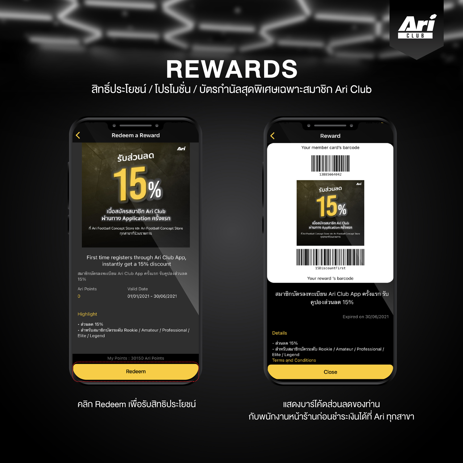 6.6 ลูกค้าตกลงและยอมรับว่าจะต้องแสดงบัตร Ari Club ทุกครั้งก่อนใช้คะแนนสะสม Ari Point เพื่อใช้สิทธิ์แลกรับของรางวัล ทั้งนี้ลูกค้าไม่สามารถยกเลิกสิทธิ์ภายหลังกดรับหรือแลกใช้สิทธิ์แล้วทุกกรณี
